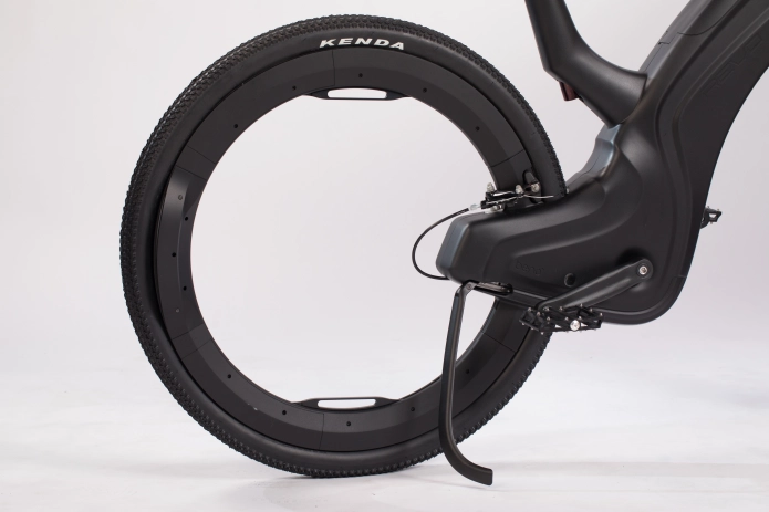 Reevo was initially designed with standard tube tires in mind. Along the way, we realized that a futuristic bike should also come with advanced tires. The nature of standard tube tires mean that there will be an air valve protruding off the tire sidewall, which we think affects the bike aesthetics. Furthermore, we hate punctures, flats, and blowouts with all our souls. This was why we decided to develop special airless tires for the bike.